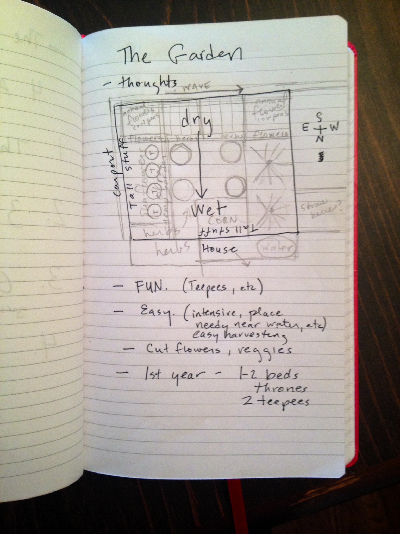 Speaking of overly ambitious goals . . . I need to show you the rough sketches of the garden plans. (Please forgive my handwriting/scrawl and any spelling errors – Thank goodness for autocorrect.) So far, we have made many lists in a little notebook – organizing all of the seeds we have into amicable groups or by details such as planting times and growth habits.